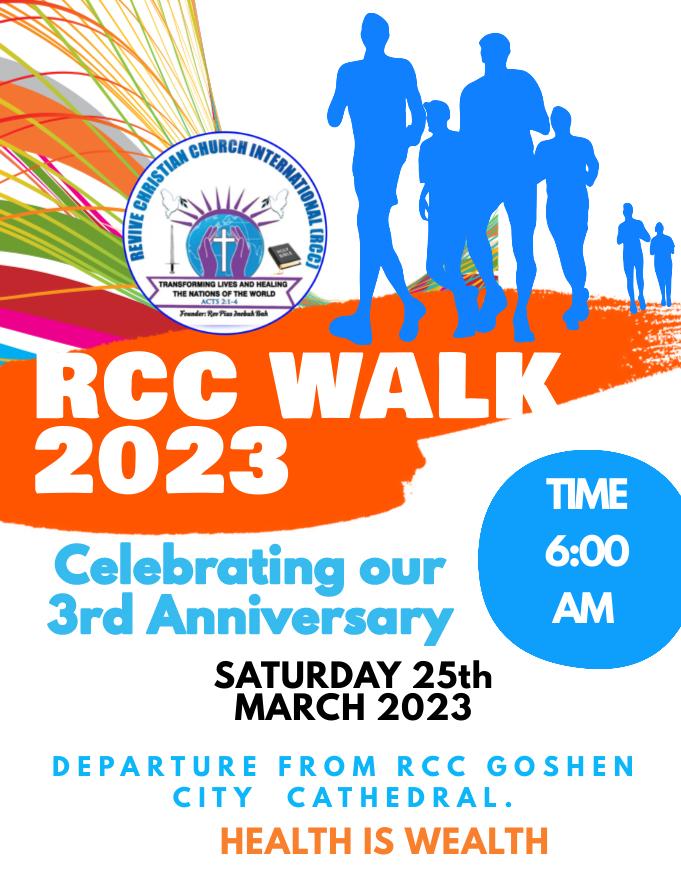 RCC HEALTH WALK We all need to be in good health. A little sports will take away stress, malaria that’s developing, headache, you will sweat out other stuffs building up in your body. Come for the walk at RCC INTERNATIONAL Goshen City Cathedral, Saturday 25th March. Time 6:00 Am is departure time. Come in any […]